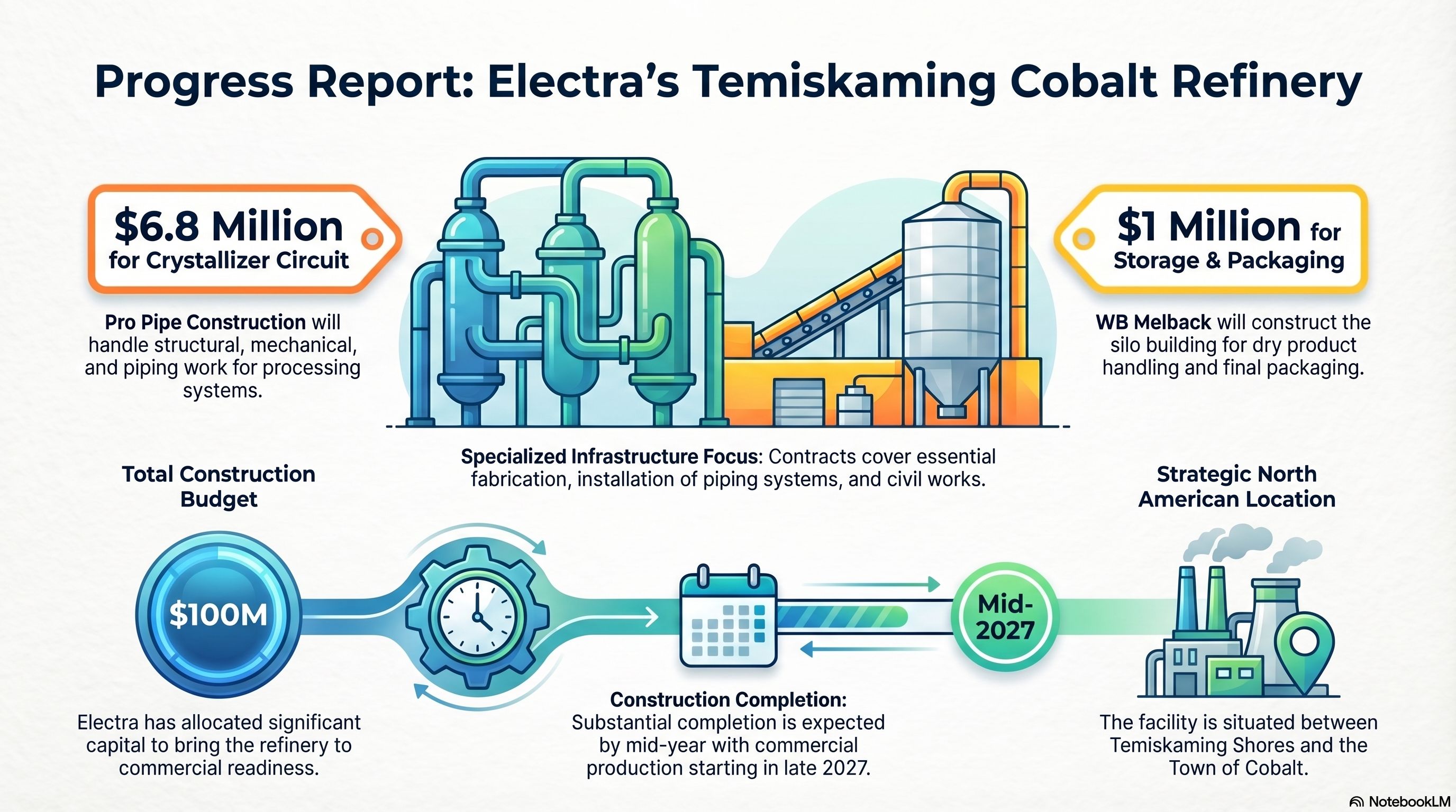Electra Battery Materials has been awarded $7.8 million in new contracts as work continues on its Cobalt. The funding will go toward mechanical systems, piping, and a new storage facility, all key pieces needed to move the project closer to completion.